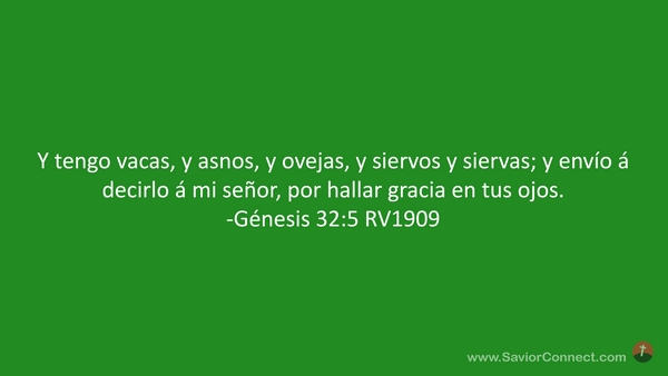 Y tengo vacas, y asnos, y ovejas, y siervos y siervas; y envío á decirlo á mi señor, por hallar gracia en tus ojos. -Génesis 32:5 RV1909