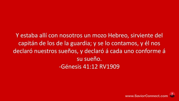 Y estaba allí con nosotros un mozo Hebreo, sirviente del capitán de los de la guardia; y se lo contamos, y él nos declaró nuestros sueños, y declaró á cada uno conforme á su sueño. -Génesis 41:12 RV1909