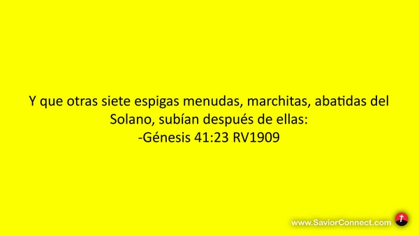 Y que otras siete espigas menudas, marchitas, abatidas del Solano, subían después de ellas: -Génesis 41:23 RV1909