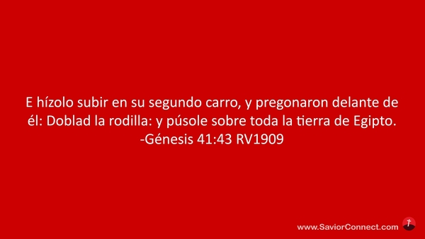 E hízolo subir en su segundo carro, y pregonaron delante de él: Doblad la rodilla: y púsole sobre toda la tierra de Egipto. -Génesis 41:43 RV1909