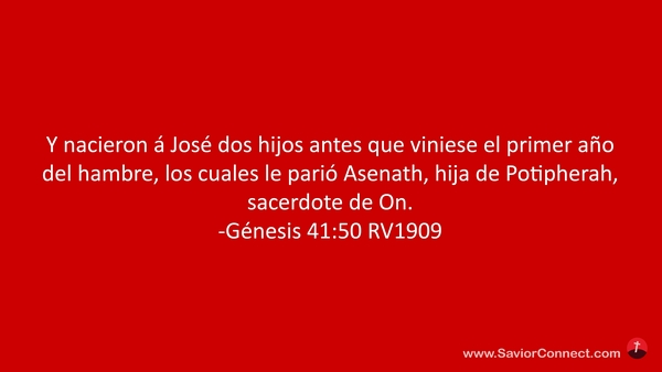 Y nacieron á José dos hijos antes que viniese el primer año del hambre, los cuales le parió Asenath, hija de Potipherah, sacerdote de On. -Génesis 41:50 RV1909