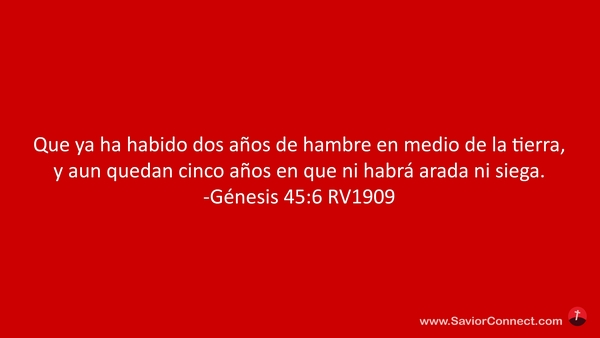 Que ya ha habido dos años de hambre en medio de la tierra, y aun quedan cinco años en que ni habrá arada ni siega. -Génesis 45:6 RV1909