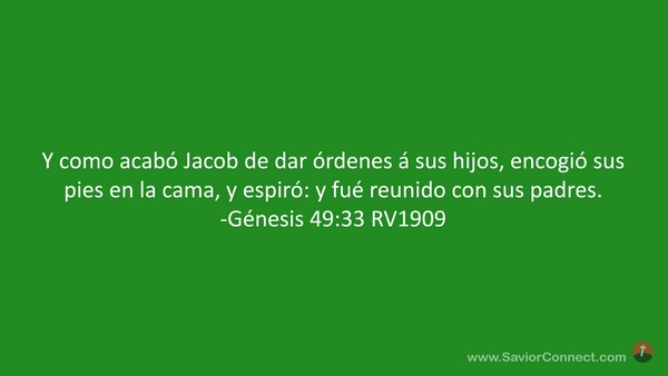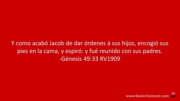 Y como acabó Jacob de dar órdenes á sus hijos, encogió sus pies en la cama, y espiró: y fué reunido con sus padres. -Génesis 49:33 RV1909