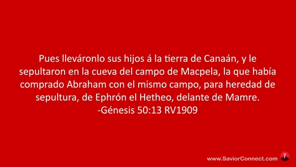Pues lleváronlo sus hijos á la tierra de Canaán, y le sepultaron en la cueva del campo de Macpela, la que había comprado Abraham con el mismo campo, para heredad de sepultura, de Ephrón el Hetheo, delante de Mamre. -Génesis 50:13 RV1909