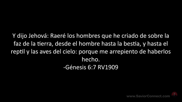 Y dijo Jehová: Raeré los hombres que he criado de sobre la faz de la tierra, desde el hombre hasta la bestia, y hasta el reptil y las aves del cielo: porque me arrepiento de haberlos hecho. -Génesis 6:7 RV1909