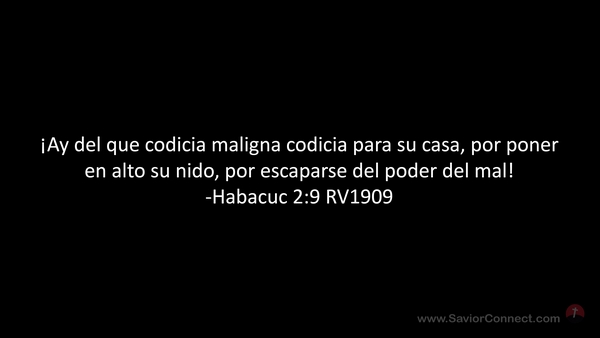 ¡Ay del que codicia maligna codicia para su casa, por poner en alto su nido, por escaparse del poder del mal! -Habacuc 2:9 RV1909