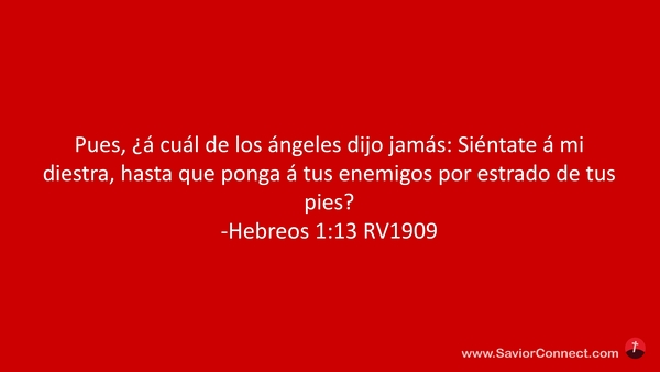 Pues, ¿á cuál de los ángeles dijo jamás: Siéntate á mi diestra, hasta que ponga á tus enemigos por estrado de tus pies? -Hebreos 1:13 RV1909
