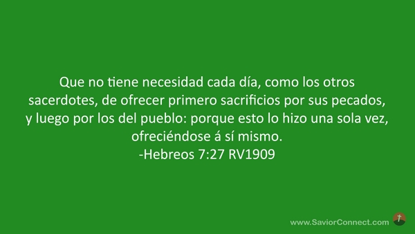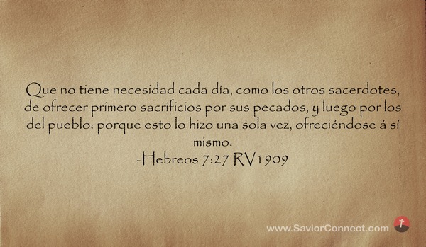 Que no tiene necesidad cada día, como los otros sacerdotes, de ofrecer primero sacrificios por sus pecados, y luego por los del pueblo: porque esto lo hizo una sola vez, ofreciéndose á sí mismo. -Hebreos 7:27 RV1909