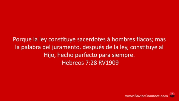 Porque la ley constituye sacerdotes á hombres flacos; mas la palabra del juramento, después de la ley, constituye al Hijo, hecho perfecto para siempre. -Hebreos 7:28 RV1909