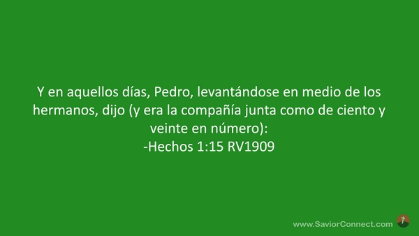 Y en aquellos días, Pedro, levantándose en medio de los hermanos, dijo (y era la compañía junta como de ciento y veinte en número): -Hechos 1:15 RV1909