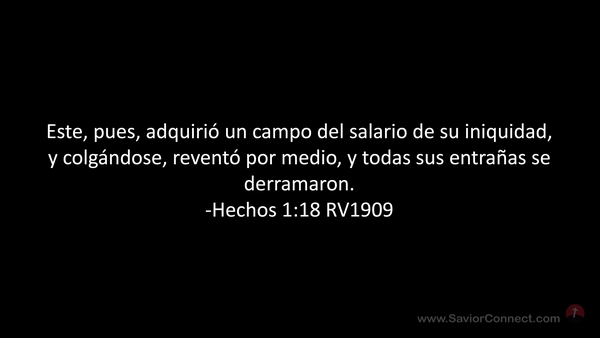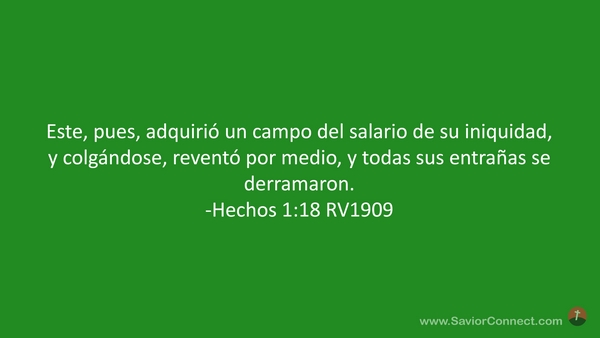 Este, pues, adquirió un campo del salario de su iniquidad, y colgándose, reventó por medio, y todas sus entrañas se derramaron. -Hechos 1:18 RV1909