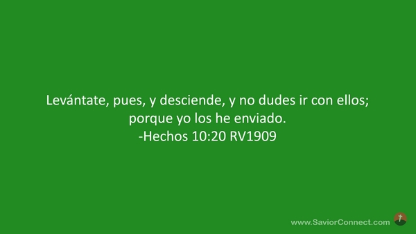 Levántate, pues, y desciende, y no dudes ir con ellos; porque yo los he enviado. -Hechos 10:20 RV1909