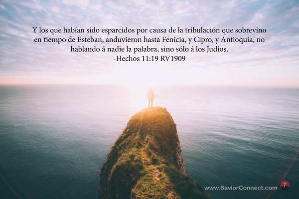 Y los que habían sido esparcidos por causa de la tribulación que sobrevino en tiempo de Esteban, anduvieron hasta Fenicia, y Cipro, y Antioquía, no hablando á nadie la palabra, sino sólo á los Judíos. -Hechos 11:19 RV1909