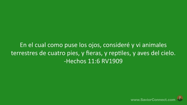 En el cual como puse los ojos, consideré y vi animales terrestres de cuatro pies, y fieras, y reptiles, y aves del cielo. -Hechos 11:6 RV1909