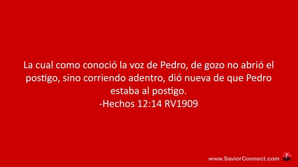 La cual como conoció la voz de Pedro, de gozo no abrió el postigo, sino corriendo adentro, dió nueva de que Pedro estaba al postigo. -Hechos 12:14 RV1909