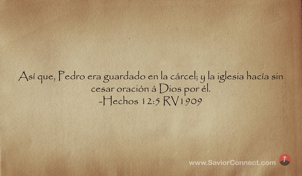 Así que, Pedro era guardado en la cárcel; y la iglesia hacía sin cesar oración á Dios por él. -Hechos 12:5 RV1909