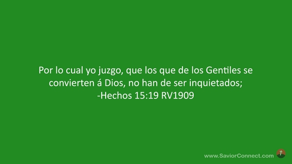 Por lo cual yo juzgo, que los que de los Gentiles se convierten á Dios, no han de ser inquietados; -Hechos 15:19 RV1909