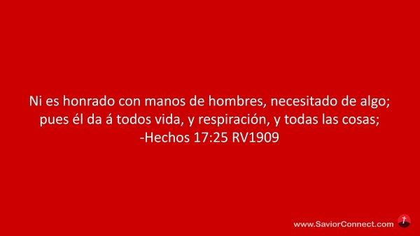 Ni es honrado con manos de hombres, necesitado de algo; pues él da á todos vida, y respiración, y todas las cosas; -Hechos 17:25 RV1909