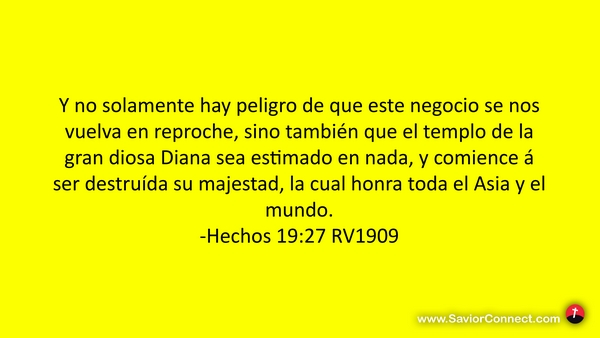 Y no solamente hay peligro de que este negocio se nos vuelva en reproche, sino también que el templo de la gran diosa Diana sea estimado en nada, y comience á ser destruída su majestad, la cual honra toda el Asia y el mundo. -Hechos 19:27 RV1909