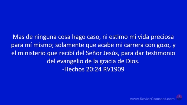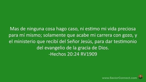 Mas de ninguna cosa hago caso, ni estimo mi vida preciosa para mí mismo; solamente que acabe mi carrera con gozo, y el ministerio que recibí del Señor Jesús, para dar testimonio del evangelio de la gracia de Dios. -Hechos 20:24 RV1909