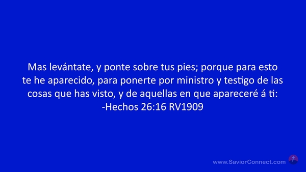 Mas levántate, y ponte sobre tus pies; porque para esto te he aparecido, para ponerte por ministro y testigo de las cosas que has visto, y de aquellas en que apareceré á ti: -Hechos 26:16 RV1909