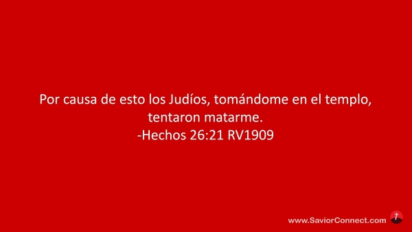 Por causa de esto los Judíos, tomándome en el templo, tentaron matarme. -Hechos 26:21 RV1909