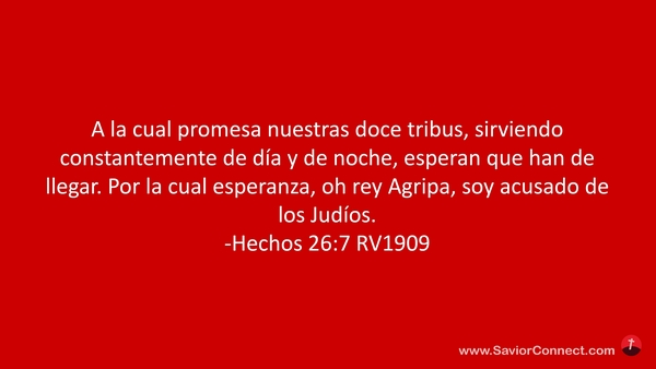 A la cual promesa nuestras doce tribus, sirviendo constantemente de día y de noche, esperan que han de llegar. Por la cual esperanza, oh rey Agripa, soy acusado de los Judíos. -Hechos 26:7 RV1909