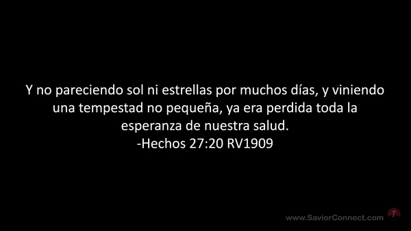 Y no pareciendo sol ni estrellas por muchos días, y viniendo una tempestad no pequeña, ya era perdida toda la esperanza de nuestra salud. -Hechos 27:20 RV1909