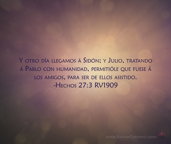 Y otro día llegamos á Sidón; y Julio, tratando á Pablo con humanidad, permitióle que fuese á los amigos, para ser de ellos asistido. -Hechos 27:3 RV1909