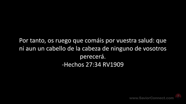 Por tanto, os ruego que comáis por vuestra salud: que ni aun un cabello de la cabeza de ninguno de vosotros perecerá. -Hechos 27:34 RV1909