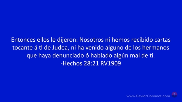 Entonces ellos le dijeron: Nosotros ni hemos recibido cartas tocante á ti de Judea, ni ha venido alguno de los hermanos que haya denunciado ó hablado algún mal de ti. -Hechos 28:21 RV1909