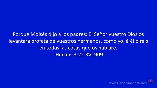 Porque Moisés dijo á los padres: El Señor vuestro Dios os levantará profeta de vuestros hermanos, como yo; á él oiréis en todas las cosas que os hablare. -Hechos 3:22 RV1909