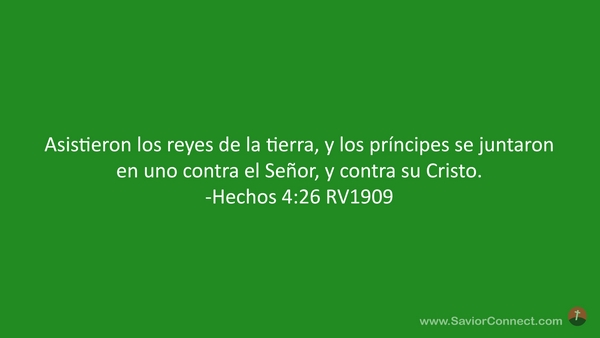 Asistieron los reyes de la tierra, y los príncipes se juntaron en uno contra el Señor, y contra su Cristo. -Hechos 4:26 RV1909