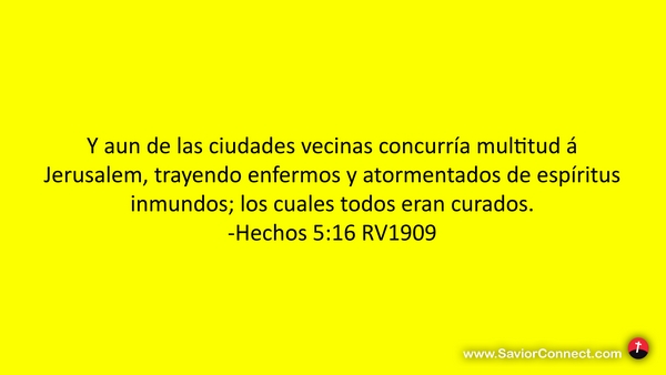 Y aun de las ciudades vecinas concurría multitud á Jerusalem, trayendo enfermos y atormentados de espíritus inmundos; los cuales todos eran curados. -Hechos 5:16 RV1909