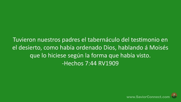 Tuvieron nuestros padres el tabernáculo del testimonio en el desierto, como había ordenado Dios, hablando á Moisés que lo hiciese según la forma que había visto. -Hechos 7:44 RV1909