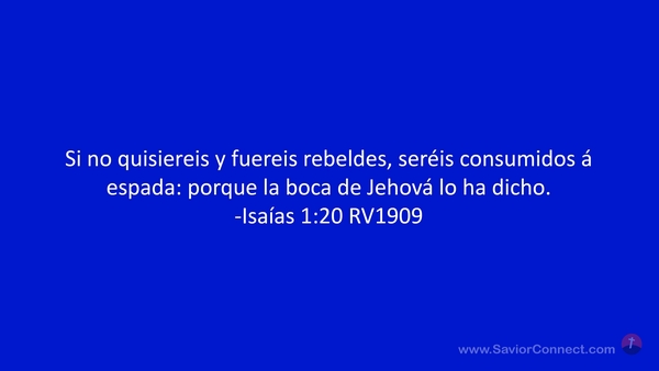 Si no quisiereis y fuereis rebeldes, seréis consumidos á espada: porque la boca de Jehová lo ha dicho. -Isaías 1:20 RV1909