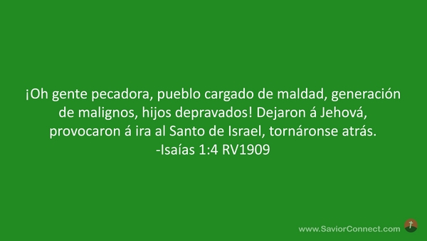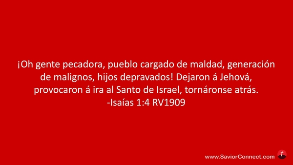 ¡Oh gente pecadora, pueblo cargado de maldad, generación de malignos, hijos depravados! Dejaron á Jehová, provocaron á ira al Santo de Israel, tornáronse atrás. -Isaías 1:4 RV1909