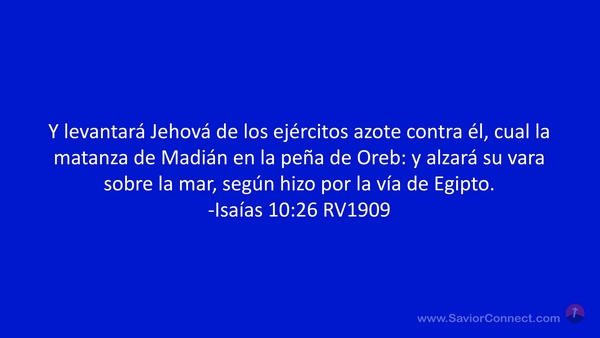 Y levantará Jehová de los ejércitos azote contra él, cual la matanza de Madián en la peña de Oreb: y alzará su vara sobre la mar, según hizo por la vía de Egipto. -Isaías 10:26 RV1909