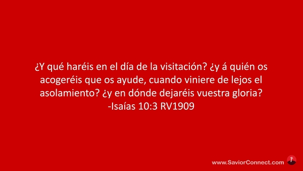 ¿Y qué haréis en el día de la visitación? ¿y á quién os acogeréis que os ayude, cuando viniere de lejos el asolamiento? ¿y en dónde dejaréis vuestra gloria? -Isaías 10:3 RV1909