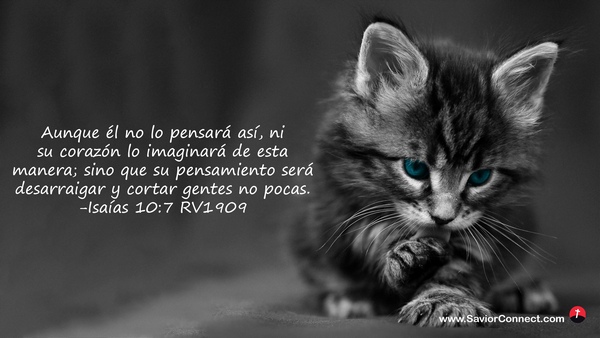 Aunque él no lo pensará así, ni su corazón lo imaginará de esta manera; sino que su pensamiento será desarraigar y cortar gentes no pocas. -Isaías 10:7 RV1909