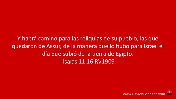 Y habrá camino para las reliquias de su pueblo, las que quedaron de Assur, de la manera que lo hubo para Israel el día que subió de la tierra de Egipto. -Isaías 11:16 RV1909