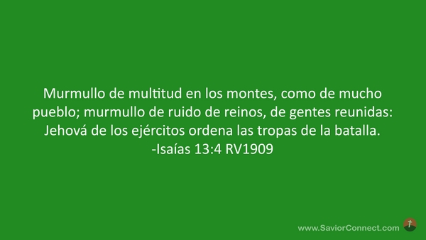 Murmullo de multitud en los montes, como de mucho pueblo; murmullo de ruido de reinos, de gentes reunidas: Jehová de los ejércitos ordena las tropas de la batalla. -Isaías 13:4 RV1909