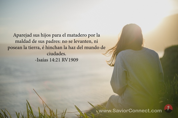Aparejad sus hijos para el matadero por la maldad de sus padres: no se levanten, ni posean la tierra, é hinchan la haz del mundo de ciudades. -Isaías 14:21 RV1909