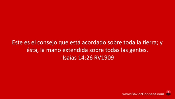 Este es el consejo que está acordado sobre toda la tierra; y ésta, la mano extendida sobre todas las gentes. -Isaías 14:26 RV1909