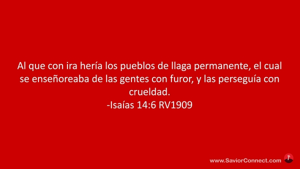 Al que con ira hería los pueblos de llaga permanente, el cual se enseñoreaba de las gentes con furor, y las perseguía con crueldad. -Isaías 14:6 RV1909