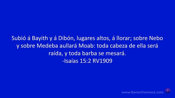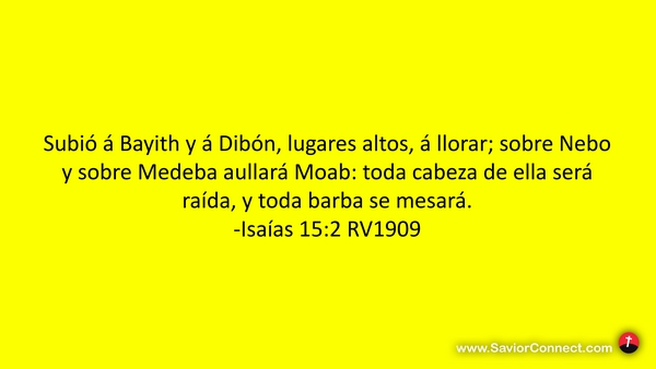 Subió á Bayith y á Dibón, lugares altos, á llorar; sobre Nebo y sobre Medeba aullará Moab: toda cabeza de ella será raída, y toda barba se mesará. -Isaías 15:2 RV1909