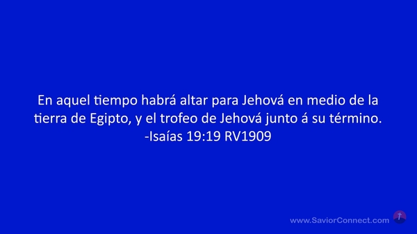 En aquel tiempo habrá altar para Jehová en medio de la tierra de Egipto, y el trofeo de Jehová junto á su término. -Isaías 19:19 RV1909
