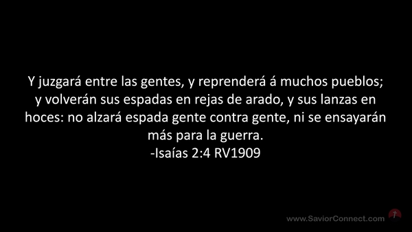 Y juzgará entre las gentes, y reprenderá á muchos pueblos; y volverán sus espadas en rejas de arado, y sus lanzas en hoces: no alzará espada gente contra gente, ni se ensayarán más para la guerra. -Isaías 2:4 RV1909