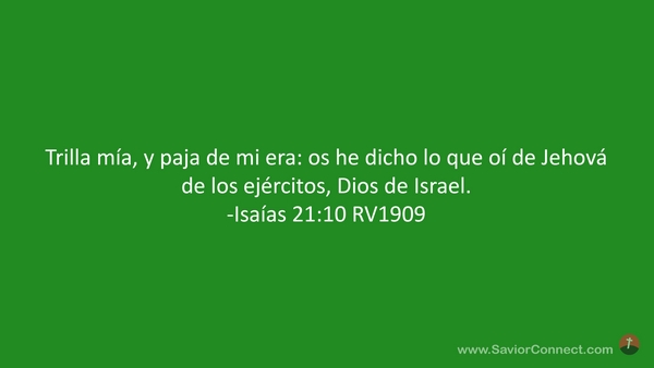 Trilla mía, y paja de mi era: os he dicho lo que oí de Jehová de los ejércitos, Dios de Israel. -Isaías 21:10 RV1909