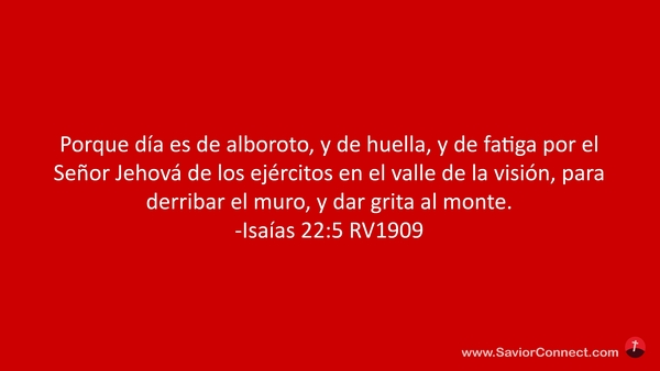 Porque día es de alboroto, y de huella, y de fatiga por el Señor Jehová de los ejércitos en el valle de la visión, para derribar el muro, y dar grita al monte. -Isaías 22:5 RV1909